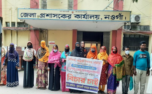 নওগাঁয় এনজিও পরিচালনার নামে দেড় কোটি টাকা আত্মসাতের অভিযোগে মানববন্ধন