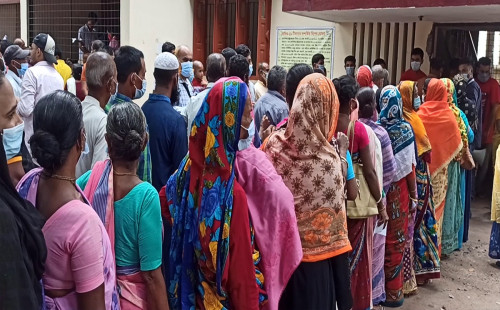 ঠাকুরগাঁওয়ে করোনার ভ্যাক্সিন নিতে টিকা কেন্দ্রে মানুষের ভিড়