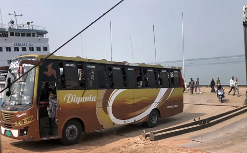এখনও যাত্রী নিয়েই ফেরিতে ওঠা-নামা করছে যানবাহন