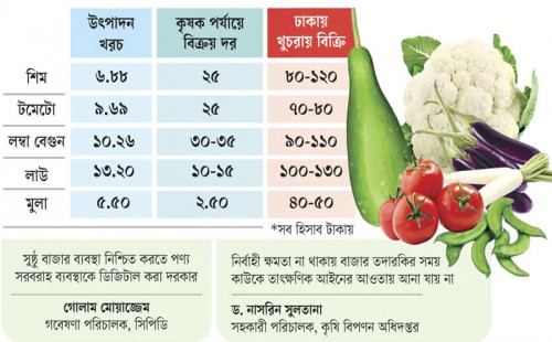কৃষক থেকে ঢাকার ভোক্তা দাম বাড়ে ৬-৭ গুণ