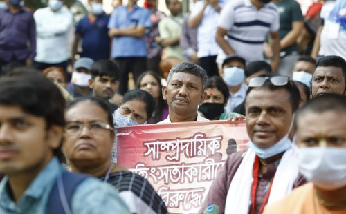 সাম্প্রদায়িক হামলাকারীদের শাস্তিসহ ৭ দাবি শাহবাগ থেকে