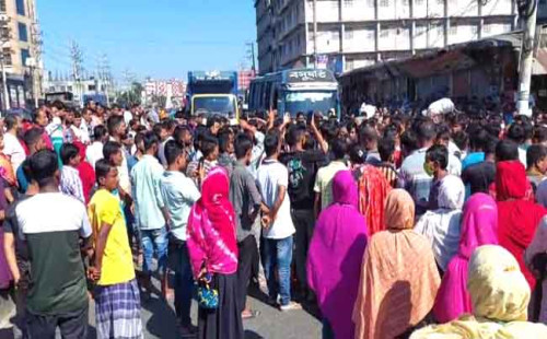বকেয়া বেতনের দাবিতে ঢাকা-ময়মনসিংহ মহাসড়কে বিক্ষোভ