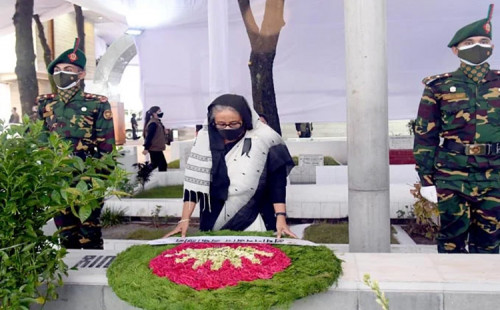 জাতীয় শোক দিবসে বঙ্গবন্ধুর প্রতিকৃতিতে প্রধানমন্ত্রীর শ্রদ্ধা