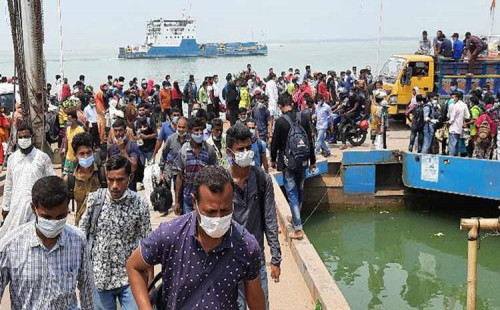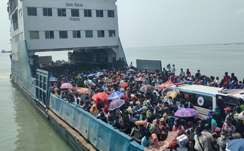 ঘরমুখো মানুষের উপচেপড়া ভিড় পাটুরিয়া ঘাটে