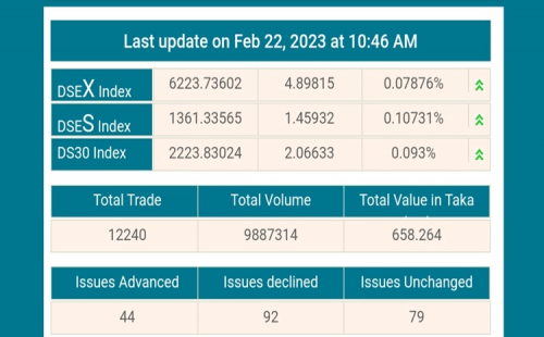 শুরুতে সূচক ঊর্ধ্বমুখী, লেনদেনে ধীরগতি