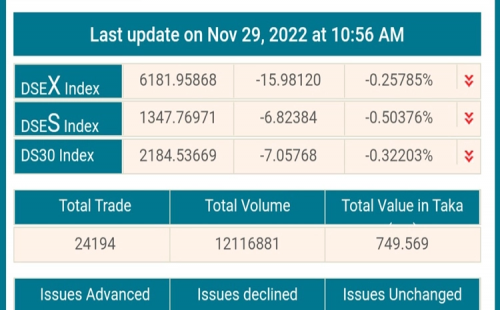 দাম বাড়ার পাল্লা ভারী, তবু সূচক নিম্নমুখী