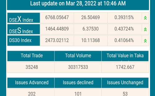 বিমা-আর্থিক প্রতিষ্ঠানে ভর করে ঊর্ধ্বমুখী শেয়ারবাজার
